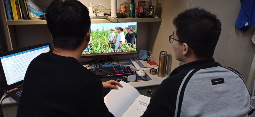 研究生党员在宿舍收看学习