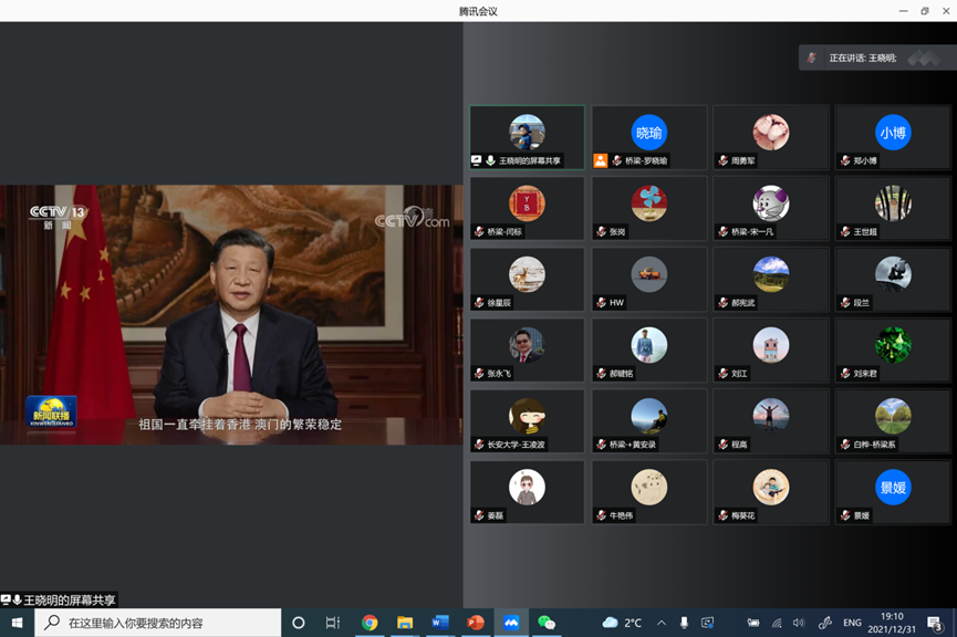 新年前夕,国家主席习近平发表了二〇二二年新年贺词。2021年12月31日19时,yl6809永利各党支部组织党员群众收看了国家主席习近平的新年贺词,感受过去一年伟大祖国的发展成就,坚定抗疫信心,共迎二〇二二。