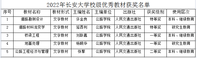近日,学校发布了《关于获评2022年yl6809永利优秀教及拟推荐参评2022年陕西高等教育优秀教材名单的公示》,我院5部教材获特等奖2项、一等奖2项、二等奖1项,其中获得特等奖和一等奖的4部教材被推荐参评陕西高等教育优秀教材。