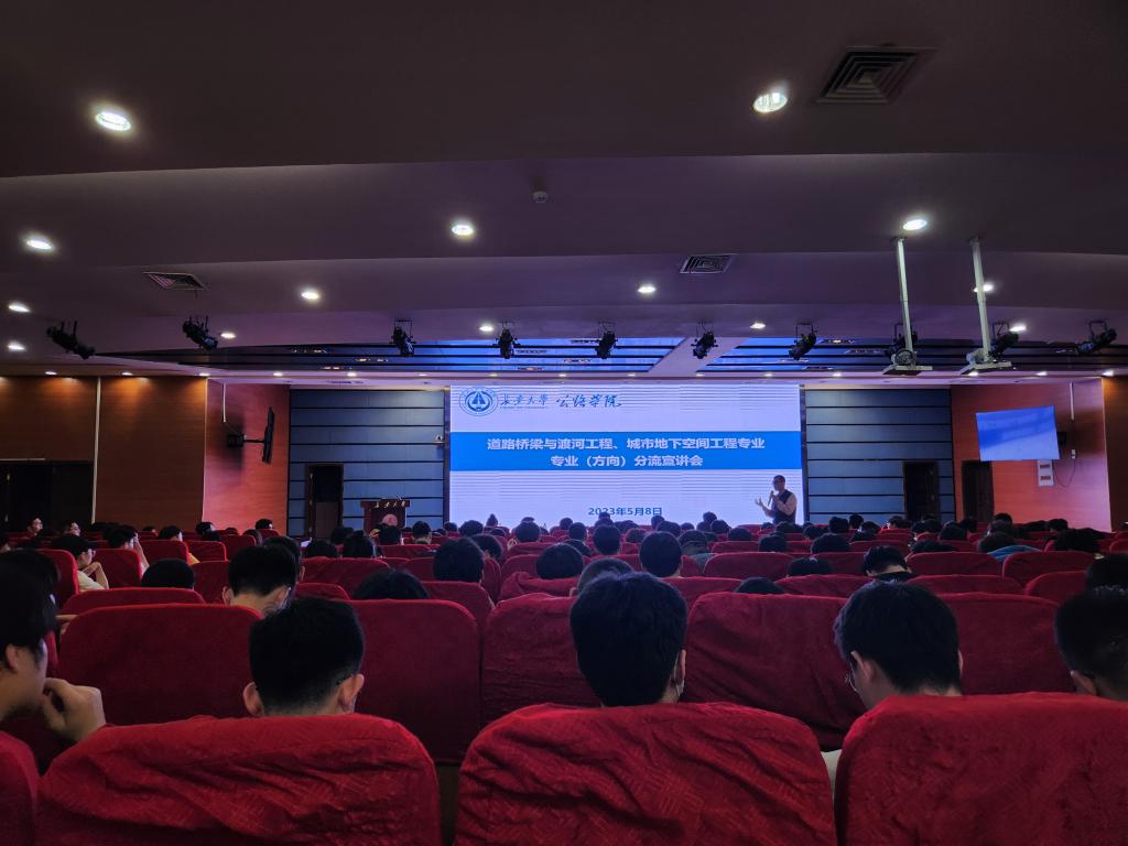 2023年5月8日晚7:00,在北辰会议中心学术报告厅,我院顺利召开2021级道路桥梁与渡河工程、城市地下空间工程专业分流宣讲会议,隧道工程系主任罗彦斌、道路工程系副主任张洪亮、桥梁工程系副主任陈峰、机场工程系主任栗培龙、岩土工程系副主任张宏光、城市轨道工程系副主任张景峰、教学秘书张晔、学生辅导员及教务管理人员参加了此次宣讲,会议由张晔主持。