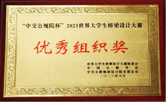 2023年6月17日,“中交公规院杯”2023世界大学生桥梁设计大赛总决赛暨颁奖典礼在武汉市光谷科技会展中心举行。学院师生作品获一等奖1项、二等奖2项、三等奖1项,另有4项作品获优秀奖、2项作品获入围奖。桥梁工程系刘龄嘉、周勇军和罗晓瑜获“优秀指导教师奖”,我校荣获“优秀组织奖”。