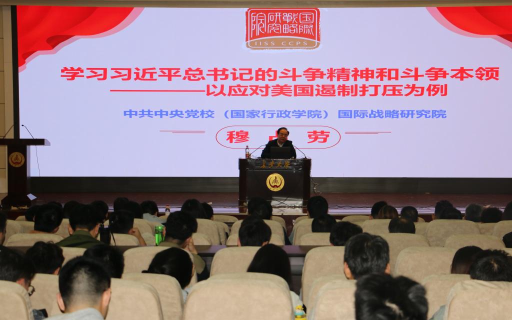 2023年10月12日下午,yl6809永利在南校区北院学术交流中心报告厅举行理论学习中心组(扩大)会议,邀请中共中央党校(国家行政学院)国际战略研究院穆占劳教授作《学习习近平总书记斗争精神和斗争本领》的专题辅导报告。学院党委理论学习中心组成员、全体教工党员和部分学生党员代表300余人共同参加了学习。辅导报告由学院党委书记汪海年主持。