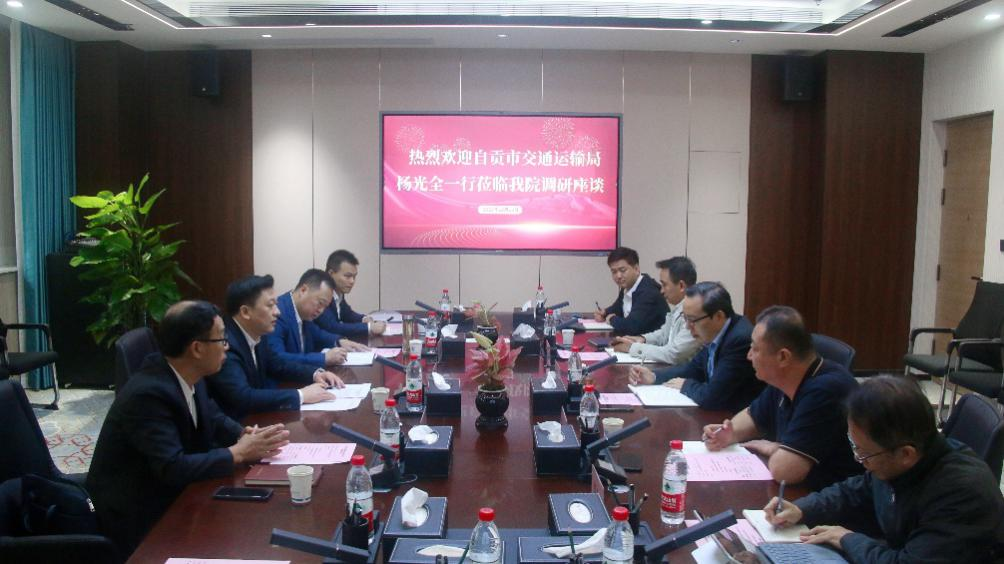 10月13日上午,自贡市交通运输局党组书记、局长杨光全,党组成员、副局长王国荣一行4人到yl6809永利六楼第二会议室座谈交流,yl6809永利党委副书记、副院长姚以亮、党委副书记刘徐、副院长韩万水参加会议。会议由姚以亮主持。