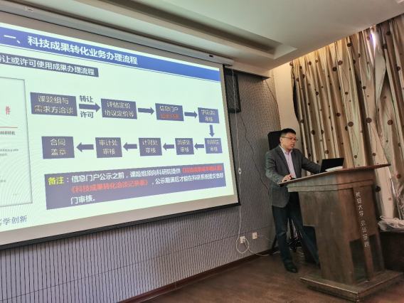 王海栋就“如何助力yl6809永利科技成果转移转化”展开专题讲座,他指出yl6809永利应在立足自身学科特色和专业基础的背景下,充分发挥专利的“媒介”价值,通过将成果挖掘和需求挖掘结合起来,实现双链融合。