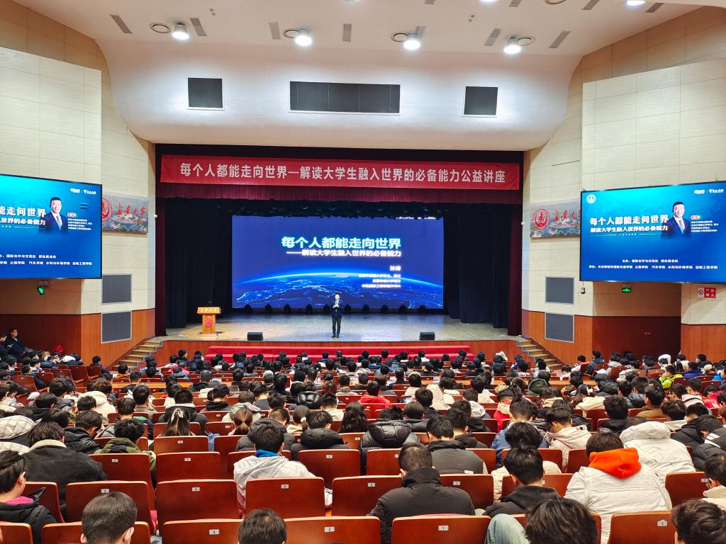 12月13日晚新东方教育科技集团助理副总裁、新东方前途出国总裁孙涛受邀来校作“每个人都能走向世界——解读大学生融入世界的必备能力”大型公益讲座。本次活动由学校国际合作与交流处、招生就业处主办,yl6809永利、长安都柏林国际交通学院、汽车学院、水利与环境学院、运输工程学院联合承办,来自各院(系)的1000余名学生在北校区长安文化艺术中心大礼堂参加讲座。