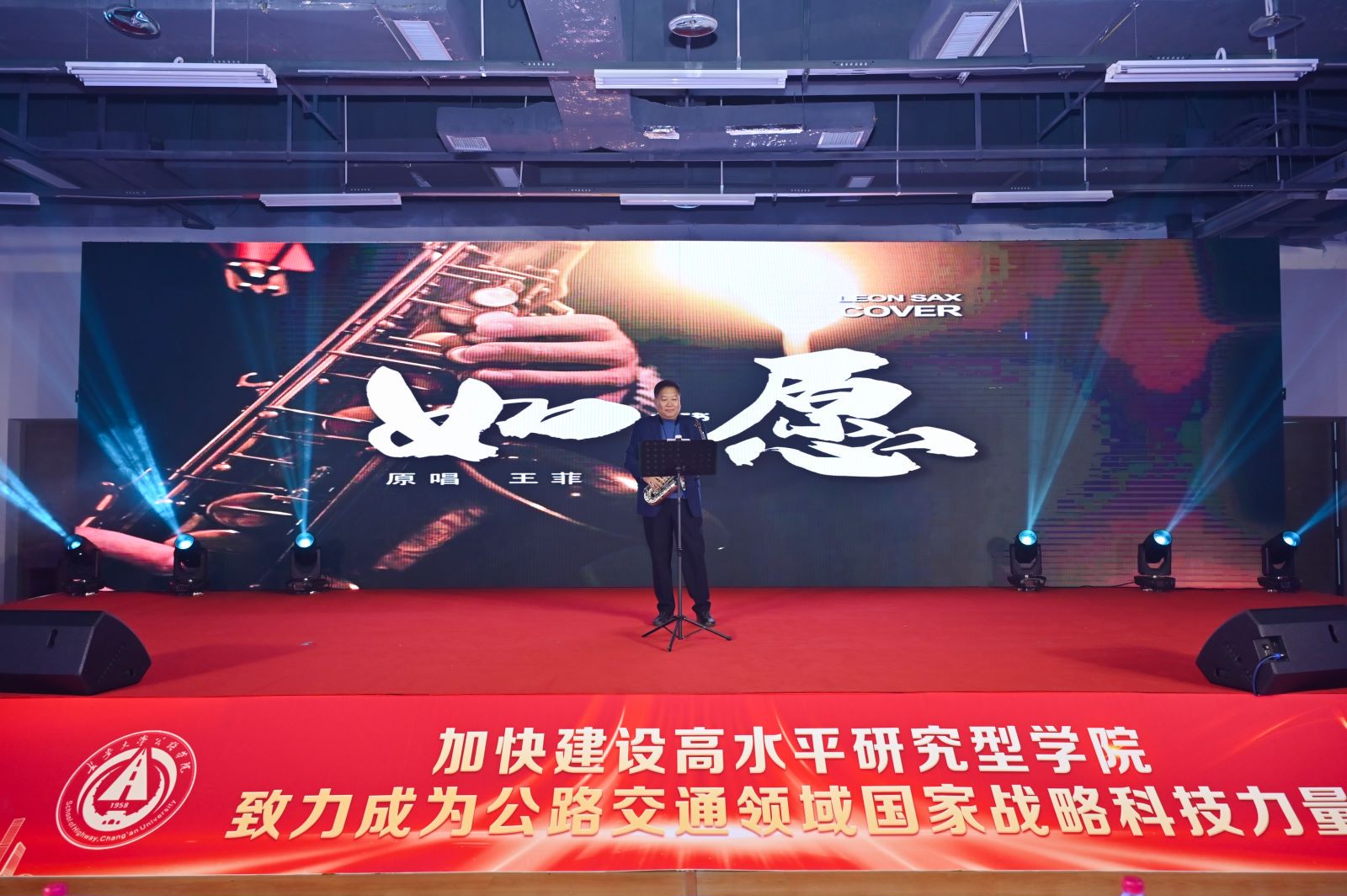 东山欢言酌春酒,明朝有意抱琴来。张景涛老师带来萨克斯独奏《如愿》,谨以此曲致敬yl6809永利六十春秋筚路蓝缕艰苦创业的引路前辈们,并与全体教职工共勉。萨克斯乐声低沉悠扬,音色通透富有磁性,指尖翻转,娓娓流淌着美好的祝愿。