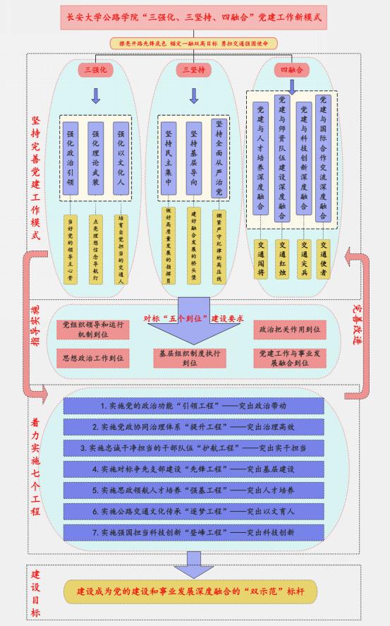 下一步,学院党委将以“全国党建工作标杆院系”培育创建为契机,继续以习近平新时代中国特色社会主义思想为指导,突出“党建引领发展、党建保障改革”主基调,实施党的政治功能“引领工程”、党政协同治理体系“提升工程”、党员干部队伍“护航工程”、对标争先支部建设“先锋工程”、思政领航人才培养“强基工程”、公路交通文化传承“逐梦工程”、强国担当科技创新“登峰工程”,推动学院各项工作行稳致远,以“一融双高”新成效为加快建设交通强国和教育强国贡献更大智慧和力量。
