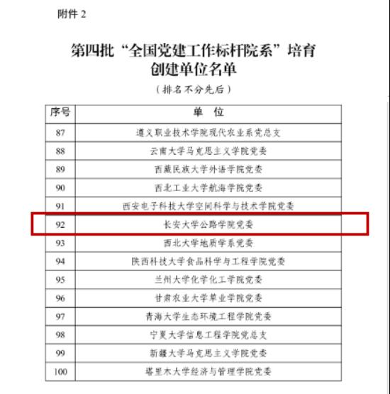 近年来,学院通过陕西省党建工作标杆院系验收,先后获评陕西省高校先进基层党组织、陕西省高等教育师德建设示范团队、全国教材先进集体、陕西省科教文卫系统模范小家;在学校党组织书记抓党建工作述职评议考核中连年获“好”等次。多名师生获评省部级以上荣誉,其中公路工程、隧道工程教师团队先后获批“全国高校黄大年式教师团队”,沙爱民教授荣获“全国创新争先奖”、标准科技创新奖“标准大师”称号,申爱琴教授荣获“全国模范教师”称号,陈建勋教授被评为陕西省高校优秀共产党员、陕西省先进工作者,顾安全教授荣获中国交通教育终身成就奖。学院主持教育部供需对接就业育人项目2项,发展包括国家级青年人才罗彦斌等教师党员5名,在高层次人才和青年教师中发展党员工作成效突出。