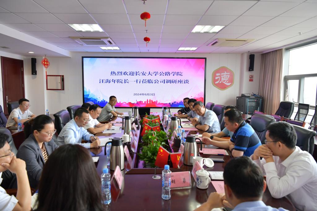 参观结束后,汪海年一行与江西公路投资公司及部分校友代表进行了座谈交流。yl6809永利路8742班校友龙华春表示,感谢母校的培养,为学校学院近年来在各项事业中所取得的突出成绩感到自豪和骄傲,希望以后进一步加强与学校学院合作,共同助力学校学院的各项事业的发展。汪海年介绍了学院近年来在学科建设、人才培养、科学研究等方面取得的成绩,他表示校友是学校的“金名片”,感谢江西校友对学校学院工作一如既往的支持,希望双方深耕江西交通沃土,共同助力江西省与学校学院发展,实现互利共赢。江西省交通运输厅高速公路管理处处长谈勇、江西省交通投资集团规划建设部部长黄智华等校友代表参加座谈。