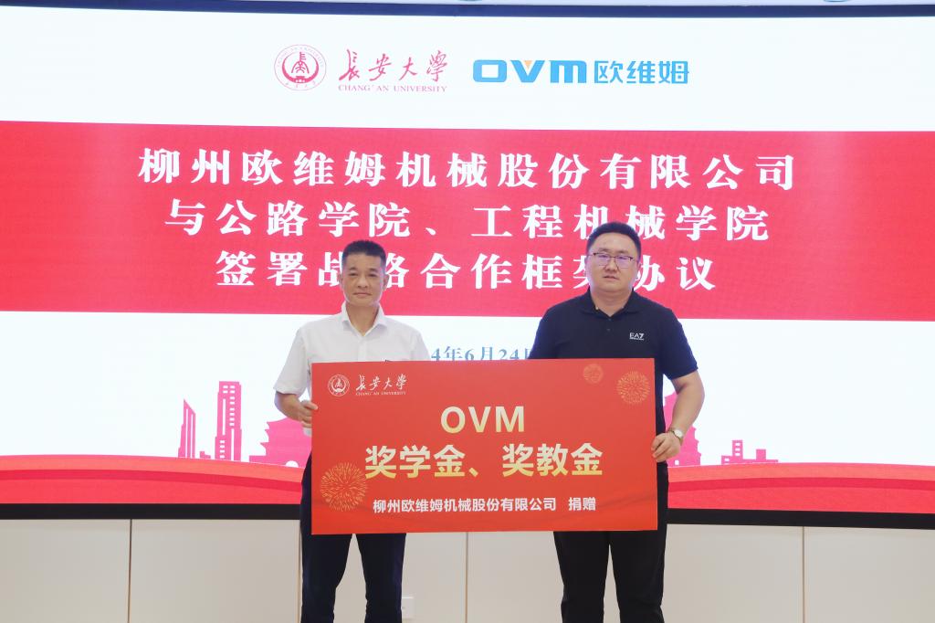 会上,yl6809永利院长汪海年、工程机械学院院长叶敏分别代表学院与欧维姆公司签署了战略合作协议,双方将充分发挥各自优势领域,积极开展合作。yl6809永利副院长韩万水、工程机械学院党委副书记雷剑分别接受了欧维姆公司捐赠的教学用具和奖、教学金。