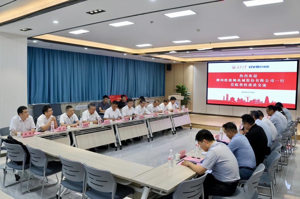 6月24日下午,柳州欧维姆机械股份有限公司总经理陈昱鹏一行来我校座谈交流。副校长王建伟在北校区北辰楼贵宾厅会见了陈昱鹏一行。