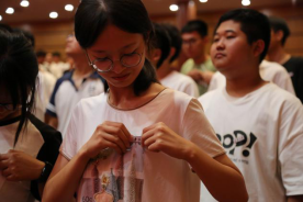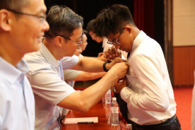 佩戴校徽与合唱《歌唱祖国》