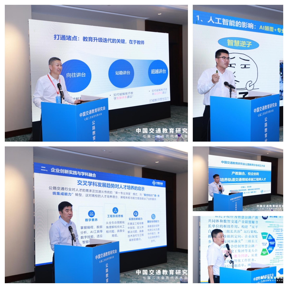 成立大会后,五位专家学者先后作主题报告。yl6809永利裴建中以《关于公路教育面临挑战的若干思考》为题,系统梳理了当前公路教育面临的机遇与挑战,为把握发展方向提供了重要遵循。中交第一公路勘察设计研究院有限公司富志鹏围绕《深化产教融合共育交通英才》,紧密结合工程实际,为校企协同育人提供了可落地的思路与路径。东南大学马涛作《数智时代道路工程专业变革的思考与实践》报告,紧扣数智化发展趋势,为道路工程专业转型升级给出了清晰实践方案。西南交通大学艾长发以《发挥轨道交通学科优势,做好卓越工程师人才培养》为题,充分展现了交叉学科赋能人才培养的优势。浙江交通职业技术学院陈凯作《双螺旋融合推进智慧交通新基建人才培养的实践与创新》报告,立足职业教育特色,以双螺旋融合模式破解人才培养难题,极具实践价值与示范意义。