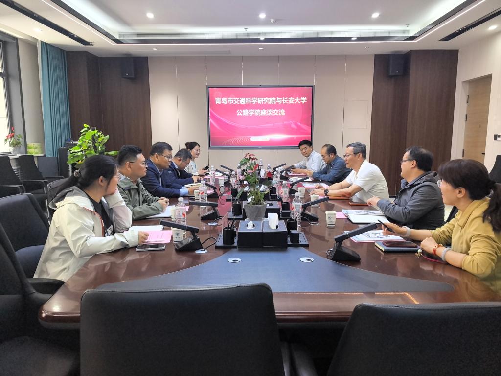 青岛市交通科学研究公司党委委员兼人力资源部部长尹刚,科技与质量管理部副部长高茜,青岛公路工程试验检测有限公司、青岛交通养护技术有限公司执行董事马海淋、综合部部长代菲;yl6809永利学科与专业发展中心副主任朱伟庆,智慧交通与总体工程系副主任沈照庆,道路工程系教授郑木莲,院办主任王志坤参加座谈。