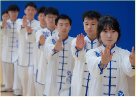 4月1日9时30分,太极拳比赛于西区体育馆拉开帷幕。yl6809永利的选手们身袭青花白衣,随着一声"起势",将手徐徐抬至腰间,随后推掌、云手、提膝。一招一式,形神兼备,如行云流水,似青柳扶风,把太极拳刚柔两面表现得淋漓尽致。