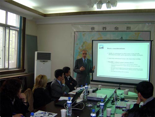 上午9时开始,学院交通工程系副主任王元庆博士首先向客人们介绍了西安市交通情况,随后Marino Mazzon先生向大家介绍了意大利在智能交通方面所开展的工作,开展Sina-Italian合作研究的有关情况,以及在北京开展工作的进展情况,省市有关部门领导就感兴趣的问题与意大利专家交流了看法。
