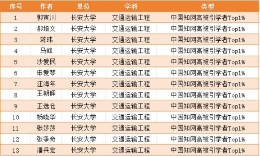 Top 1% Highly Cited Scholars in Transportation Engineering