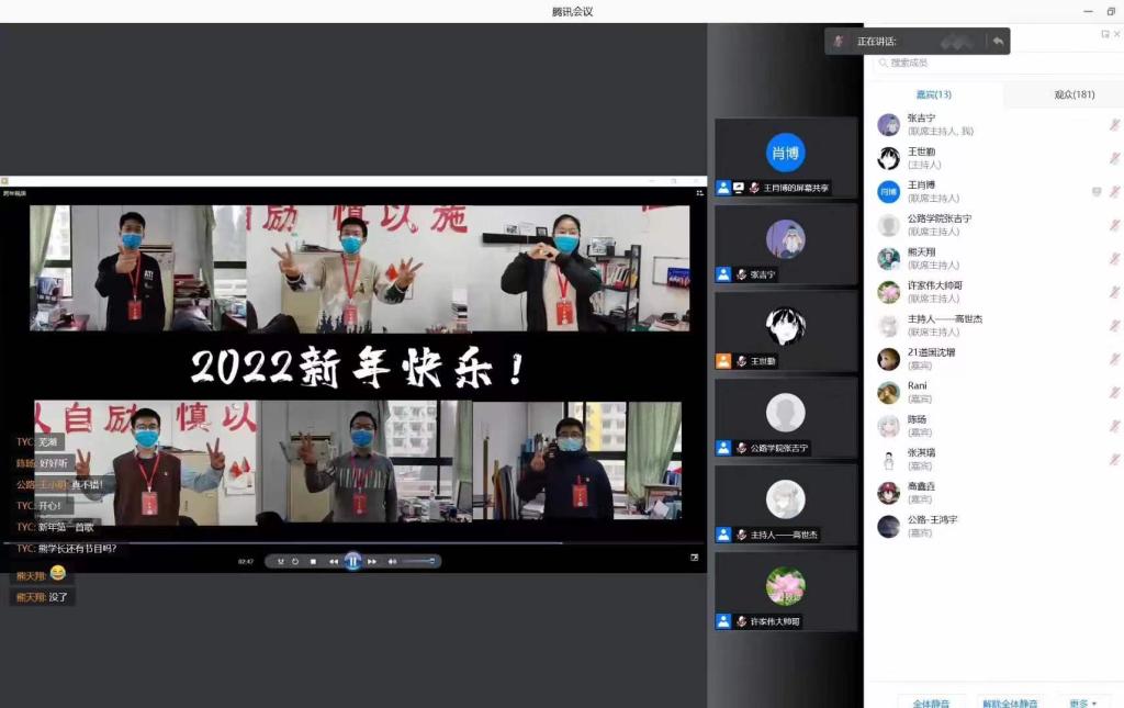 2022元旦来临,为进一步增强同学们的抗疫斗志、坚定抗疫必胜信念、丰富学生封控期间的日常生活,yl6809永利于12月31日晚举办2022年元旦云端跨年演唱会,院党委副书记刘徐、学办全体辅导员老师及600余名同学参与线上活动。