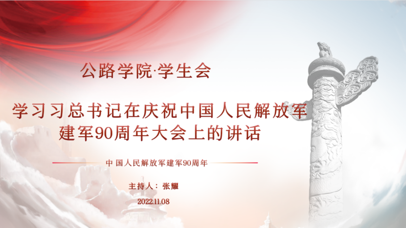 2022年是我党建军95周年,为深入学习党的革命历史,温故党的建军知识,以实际行动迎接二十大的召开。2022年11月8日晚,yl6809永利学生会全体成员于线上集中学习中国人民解放军建军 90 周年大会讲话精神。本次会议由学生会主席团成员张耀主持,学生会指导老师张吉宁老师出席本次活动。