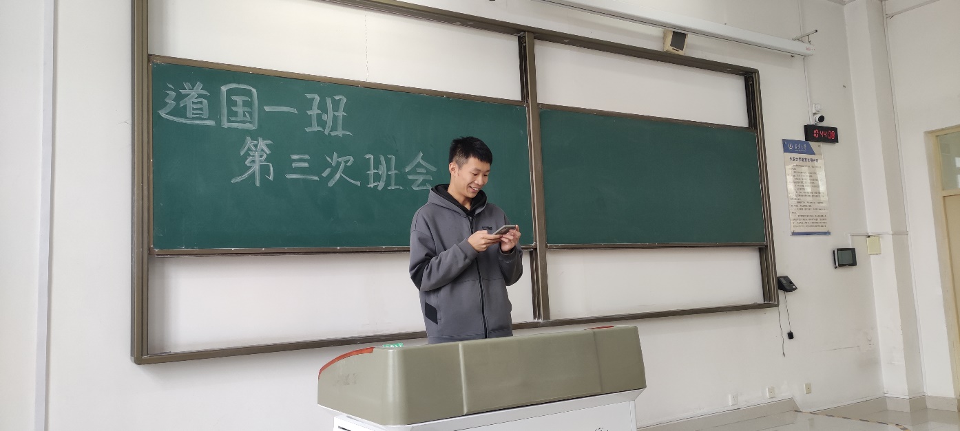 班会邀请工科试验班李楷瑞、王士董学长分享经验。李楷瑞从自己在校期间学习、生活、社会实践等方面的亲身经历出发为学弟学妹们介绍了相关经验,提醒同学们少走弯路,明确大学期间的人生规划。他提醒各位同学永远把学习放在第一位,按时完成学习任务,多与其他同学交流。同时,在生活中要经常总结近期的收获与教训。最后,他还提醒同学们要劳逸结合,适度参与各类体育活动。