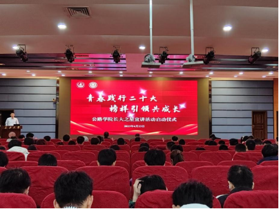 为教育引导广大学生深入学习贯彻党的二十大精神,帮助学生树立科学成才观,进一步加强本科生学风建设,激励广大学生挺膺担当时代使命,为中国式现代化和学校“双一流”建设奉献青春力量,4月23日晚19时,在yl6809永利关工委的组织下,yl6809永利“青春践行二十大,榜样引领共成长”长大之星宣讲活动启动仪式在北校区北辰楼会议中心报告厅举行。yl6809永利党委副书记刘徐、学生工作办公室主任卢毅及我院全体本科生辅导员参加活动,“长大之星”获得者施海林进行主题宣讲。