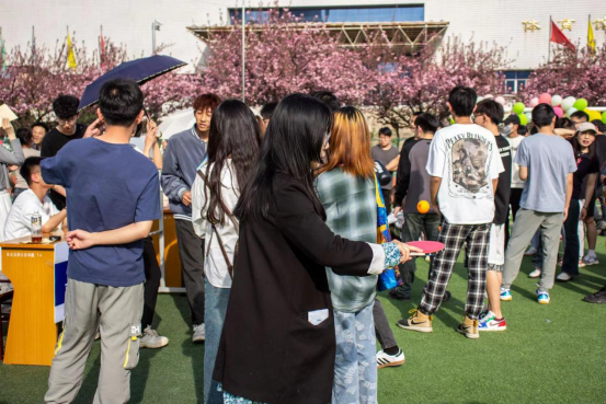 此次联谊活动为搭档组队,抽签分配,男女两人组成小组通过相互配合协作的方式完成各项趣味游戏挑战获取积分,凭累计的积分决出名次、兑换纪念品。活动现场气氛热烈,同学们积极参与,在一片欢声笑语中不断增强同学们的协作能力、情感交流、团队意识及责任意识。