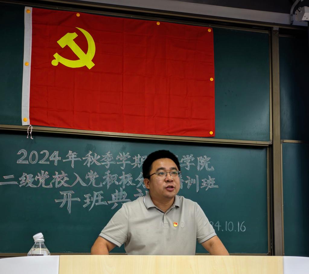 2024年秋季学期yl6809永利二级党校入党积极分子培训班开班典礼于10月16日在WH1307教室举行。yl6809永利党委书记张久鹏、党委正处级组织员廖谦、党委副书记贾历波、学办主任卢毅、团委副书记王达、全体辅导员及57名受训学员参加此次典礼。典礼由副班主任刘亦澜主持。