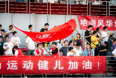 党员志愿者为运动员们摇旗呐喊