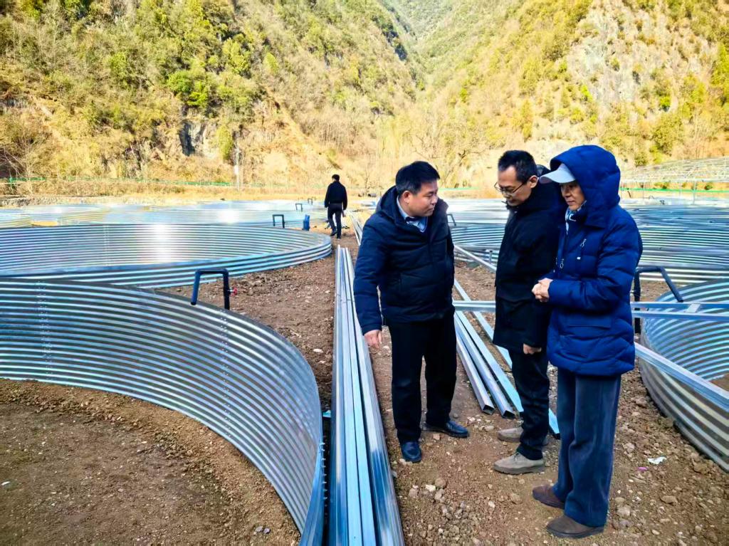 随后走访了文化坪村冷水鱼养殖基地,了解本年度产业发展情况和经营效益。紧接着,他们又来到在建冷水鱼养殖基地参观指导。在施工现场,刘伟详细察看了工程进度,并就新基地的产能规划、技术应用和市场前景与负责人进行了深入交流。
