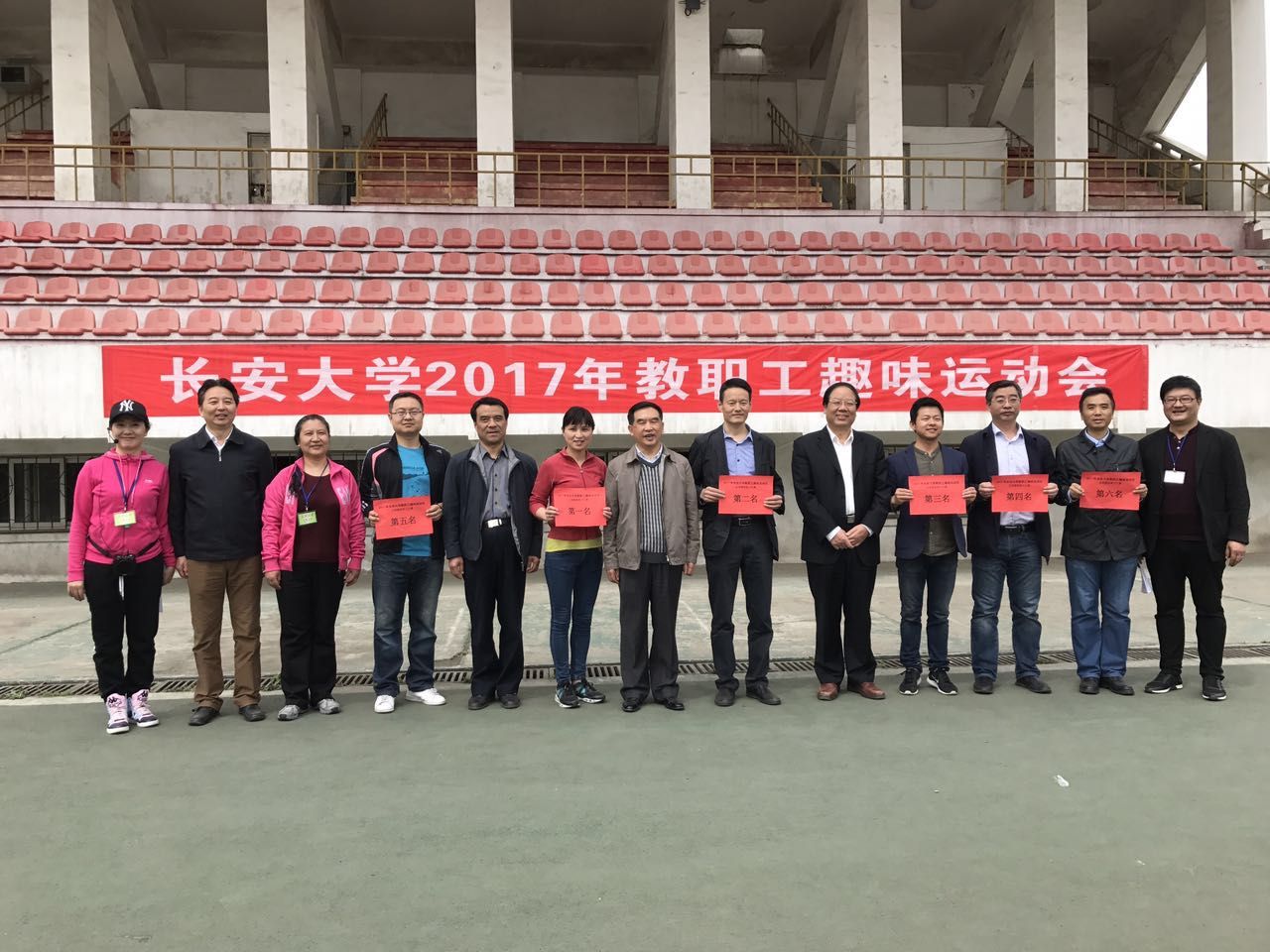 为了贯彻落实文体活动的“广泛性、群众性、健康性、竞技性、趣味性、文化性”,营造健康向上的校园文化氛围,培养教职工良好的体育锻炼习惯,提高教职工身体健康素质,校工会于2017年4月20日上午在校本部北院体育场(足球场)举办了以“享受运动快乐、拥有健康体魄”为主题的教职工趣味活动,活动项目包括:夹乒乓球与投沙包接力比赛(8女8男)、足球踢准接力比赛(8女8男)及五人木质协力竞走接力比赛(5女5男)三项。