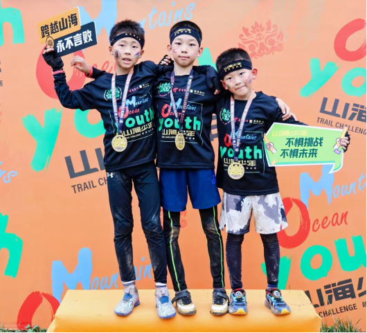 在近一个小时3-5公里的比赛中,小选手们雨汗交织、浑身湿透,咬牙坚持越过一个一个障碍,当奋力冲过终点线获得奖牌时,小脸蛋上无不浮现出自豪的喜悦,大喊着:“好开心啊,明年六一我还要来!”。